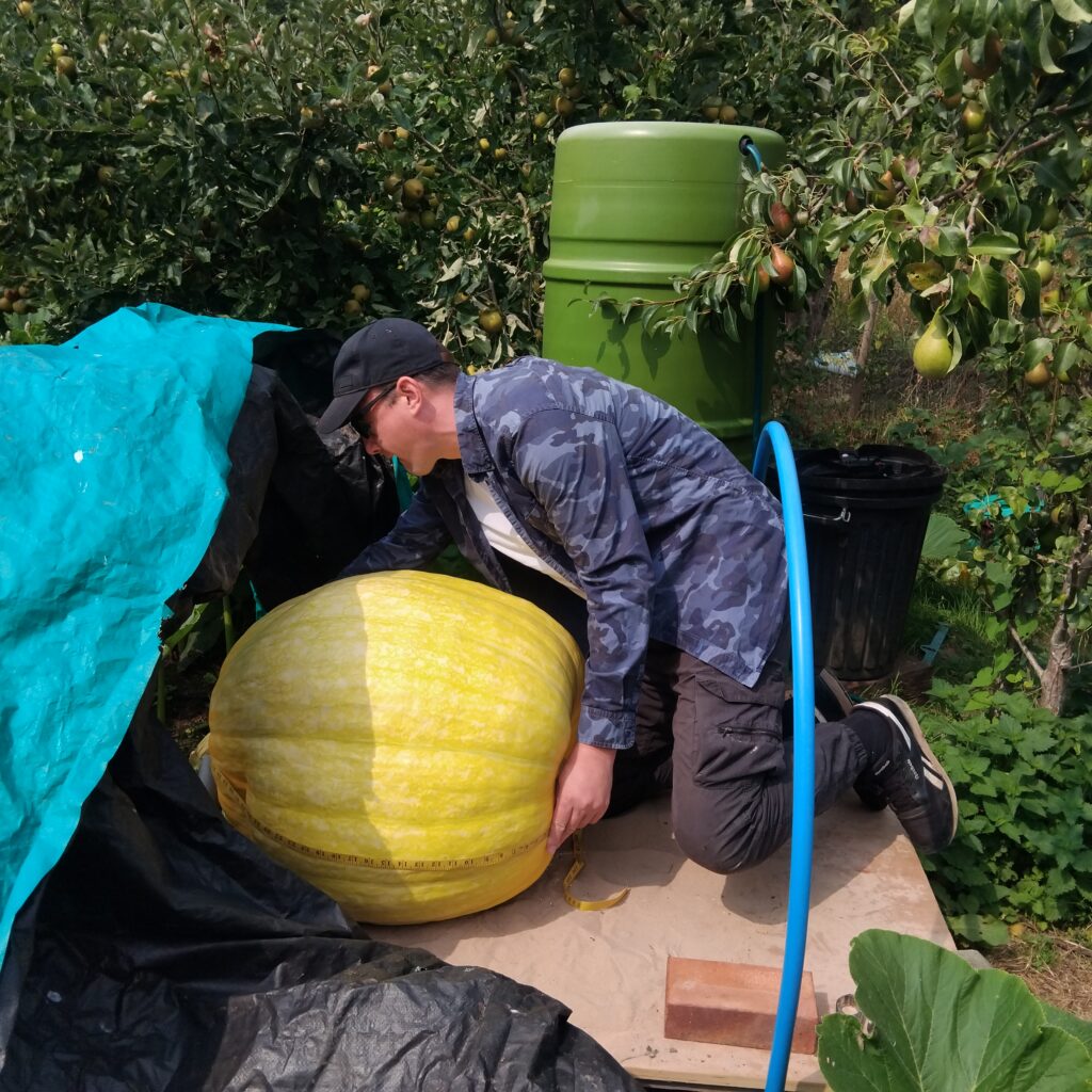I had a good interim scan following 2 months of treatment, and there were high expectations for complete remission in January, but the lymphoma decided to pop back up in my hip on an end of treatment scan in March 2025. I felt like a bit of a fraud having rung the end of treatment bell at the hospital chemosuite. Despite all this however, I actually felt pretty healthy for the first half of this year. I gradually started to get back on top of my allotments and garden. Realising that at some point treatment was likely to restart, I tried to make every day count. That’s all you can do really with cancer hanging over your head. Each morning you wake up into a nightmare… instead of from one, but a new day is a day of opportunity if you can persuade yourself to see it that way. And I decided to crack on with growing a giant pumpkin this year, even if I couldn’t be sure I’d be available to see it through to harvest.