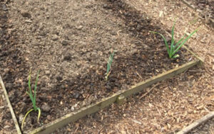 - Space – the corners of my beds are often empty, sowing into the corners doesn’t prevent me getting started with main crops in Spring the following year. The garlic will be gone in early summer anyway if main crops expand to edges and corners.