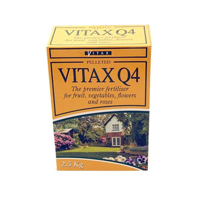 VITAX Q4 FERTILISER 2.5KG (£2.10) – The all purpose pelleted fertiliser for plants, roses, fruit, flowers, vegetables and lawns. Contains the vital nutrients and trace elements which are slowly released.