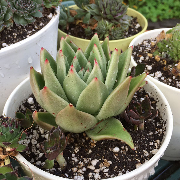 When potting up succulents drainage is very important, I use a soil mixture of 50% compost, 25% Perlite and 25% Horticultural Sharp Sand. This mixture provides nutrients for growth whilst at the same time allowing water to drain from the top of the pot to the bottom encouraging longer roots and stronger plants. For their first watering after potting up I use rainwater rather than tap water. I think for any newly sown seeds or potted plants rainwater is the most gentle drink you can give them at what is for them an important and stressful time.